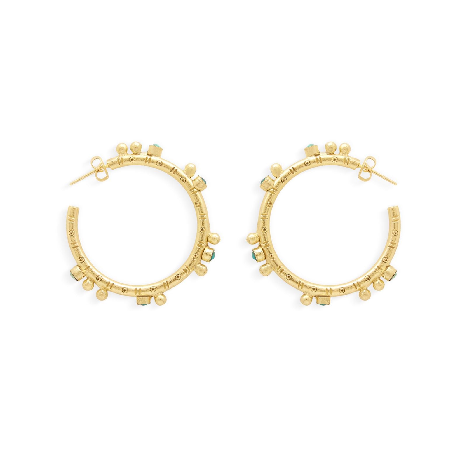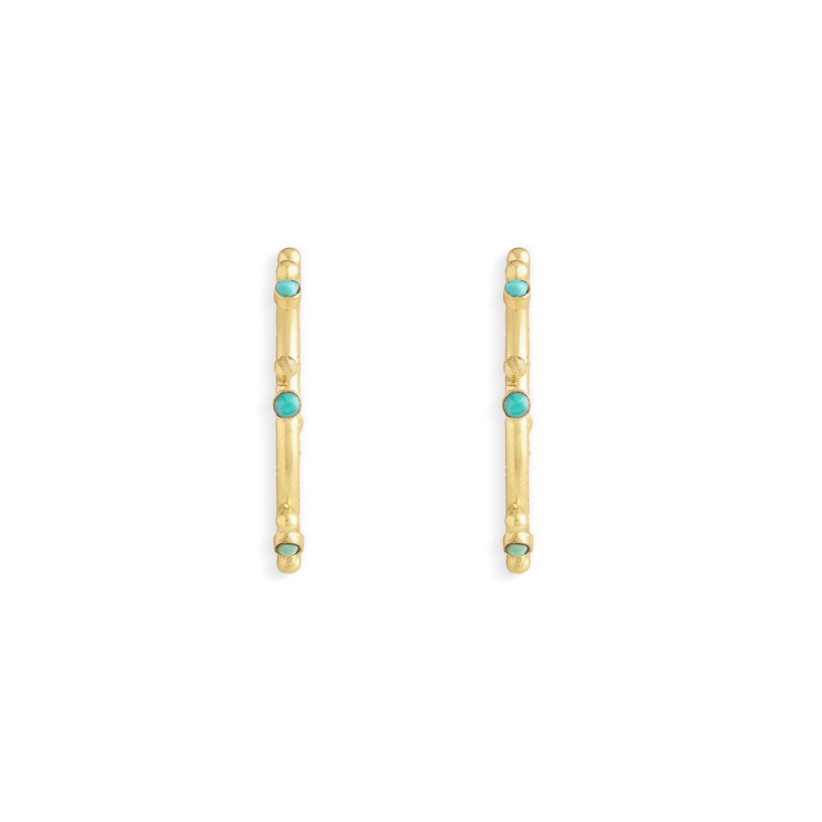 Celebrate heritage with our handcrafted turquoise hoops, available in both radiant gold and polished silver, in two thoughtfully designed sizes. Set with hand-cut turquoise stones, each pair is a tribute to Nepalese craftsmanship and the quiet strength of nature.