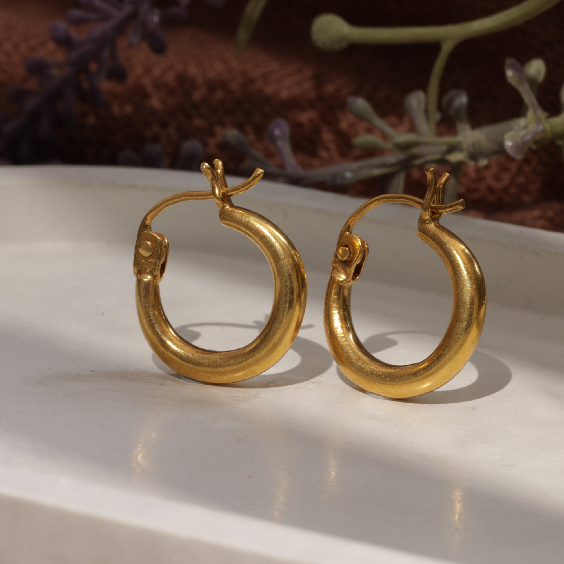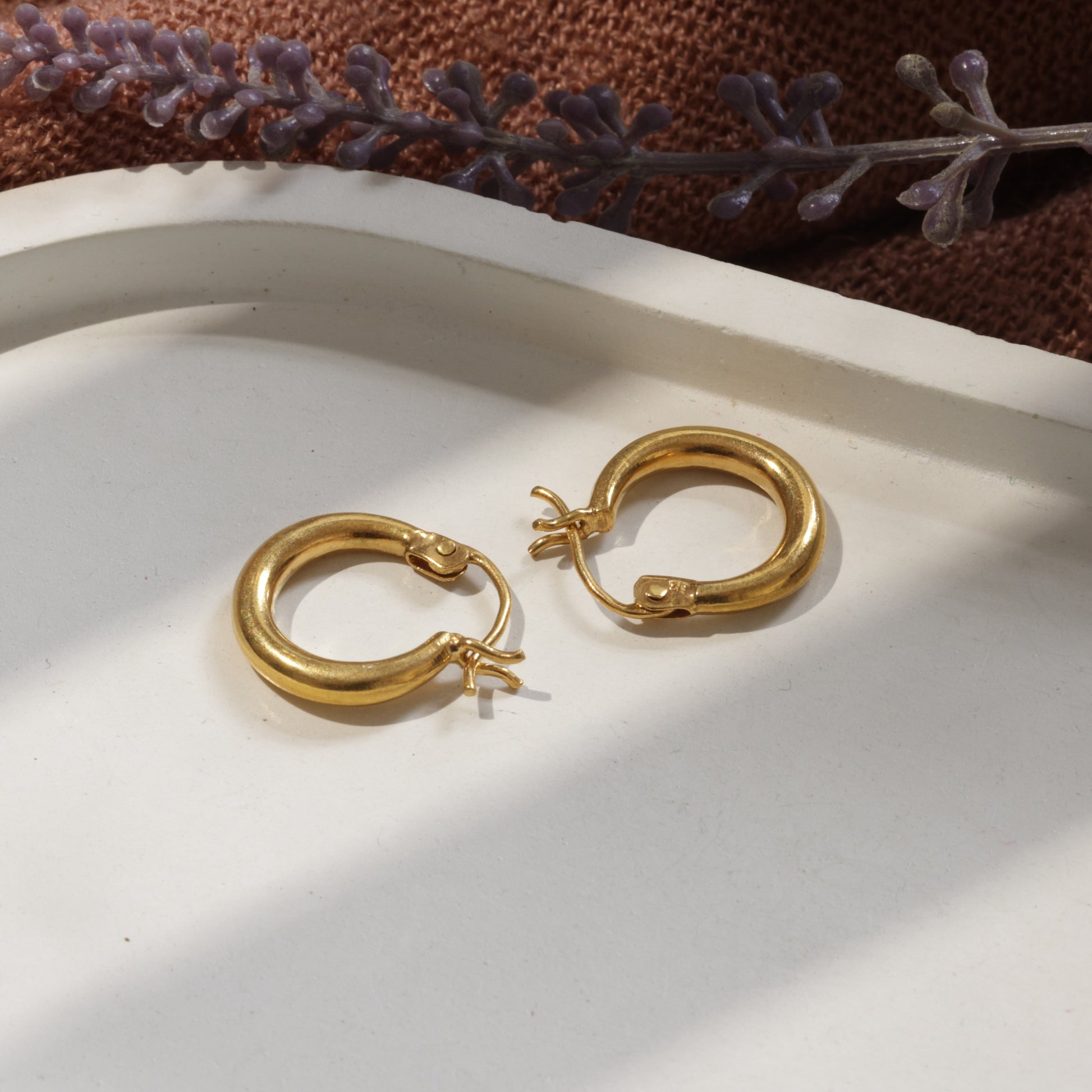 This plain hoop is crafted from durable brass and beautifully gold-plated, offering a sleek and elegant finish. Its smooth, seamless design adds a subtle yet chic touch to any look. The high-quality brass ensures lasting strength, while the gold plating gives it a warm, refined glow. Perfect for everyday wear, this versatile hoop complements any style—whether worn alone for a delicate statement or stacked with other hoops. Lightweight and comfortable, it's the ideal accessory for those who appreciate minimalist beauty with a touch of luxury.